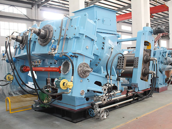 The Double Screw Extruding Sheeter is designed with a compact layout, significantly improving the ease of installation. The transmission system is driven using either a variable frequency motor or an AC motor. A level detector is installed on the twin screw rubber machine to automatically control the speed of extruding and calendering. Made of chilled cast iron, the rolls come with a bored structure, and the gear reducer is designed with a hardened surface in order to reduce wear. The rubber blender saves labor and is an optional addition. The pulling roll is driven using a variable frequency motor, and rotating components on the extruder make use of reciprocating or hydraulic screws.
