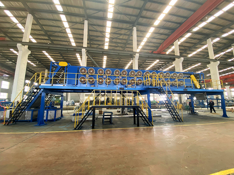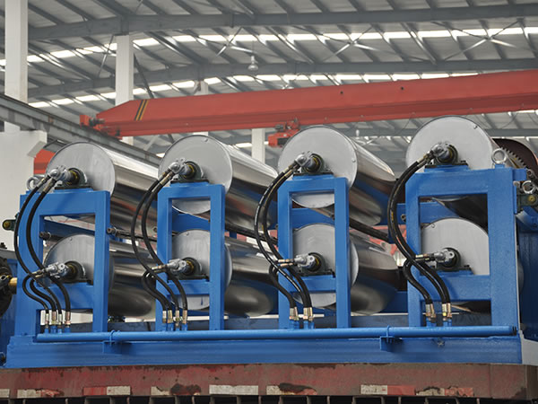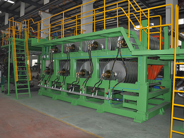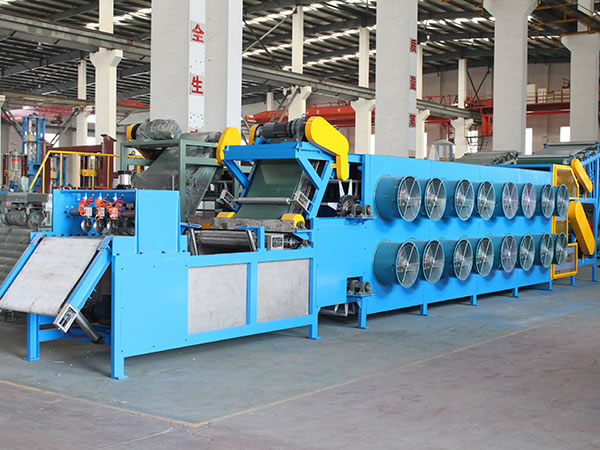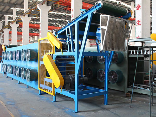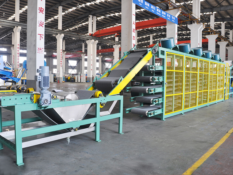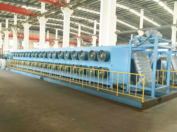 The batch off cooler is designed to cool rubber strips coming from the two roll mill or a roller die calender, then stack cooled rubber sheets on a pallet. Based on a heat dissipation mode, the batch off cooler can be divided into the air cooled type or a water cooled type, and both are designed with a circular cooling system. Large capacity draught fans are used to ensure the temperature of the cooled rubber strip is low enough, but 5 to 10 degrees higher than room temperature. We also use a variable frequency motor on the cooler to achieve stepless speed regulation. A PLC auto control system is also used. For complete automation, the rubber cooling machine can be outfitted with mechanical arms for gripping the rubber strip, an automatic hoisting system for stacking, an automatic weighing device, and a bar code printer.