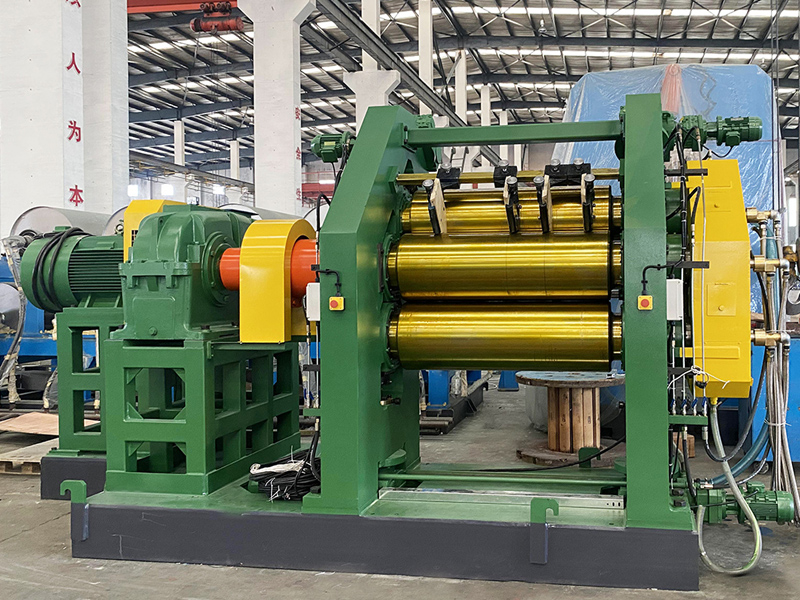 This rubber forming machine is available in two types: regular and precision. The precision rubber calendering machine is equipped with an axis cross unit, pre-loading mechanisms, a pre-bending device, and a device to prevent the calendered rubber material from extending across the connector.