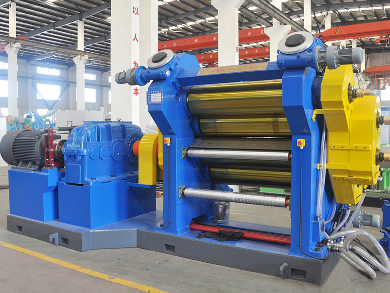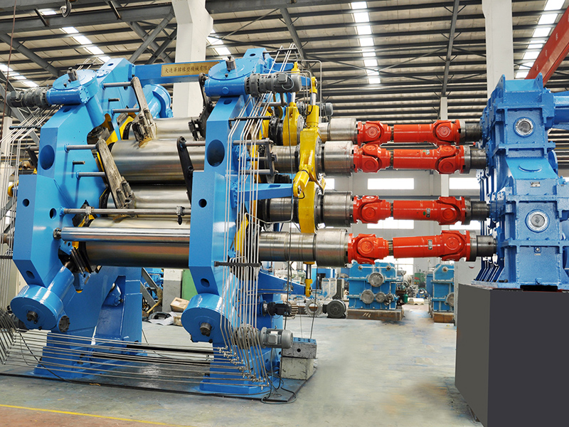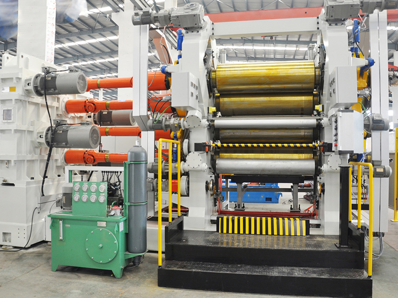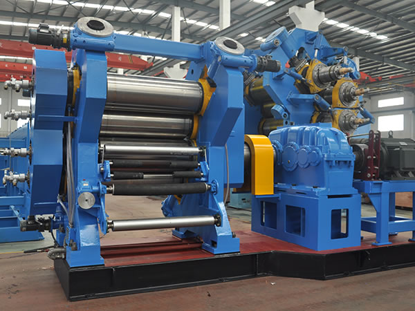 The rubber calender is outfitted with different auxiliary devices to accommodate various processes such as rubberizing and frictioning. Each auxiliary device of the rubber calendering machine is designed in accordance with the corresponding production process, and uses rolling bearings on the rubber calender machine. The gear reducers are designed with a hardened surface to reduce wear, and with either a hollow or bored structure, the rolls used are made of chilled cast iron. The rubber calender can be driven by single or multiple motors, each of which feature a stepless speed regulation to widen the application range.